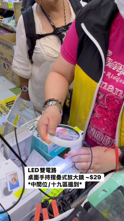 LED雙電路桌面手持摺疊式放大鏡 ~$29