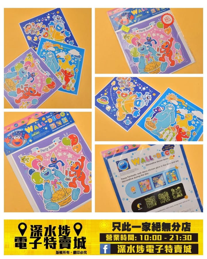 芝麻街夜光牆壁貼紙套裝~$9