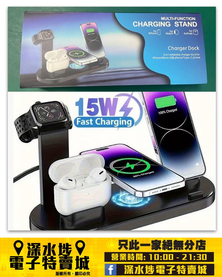 三合一可旋轉無線充電座~$35