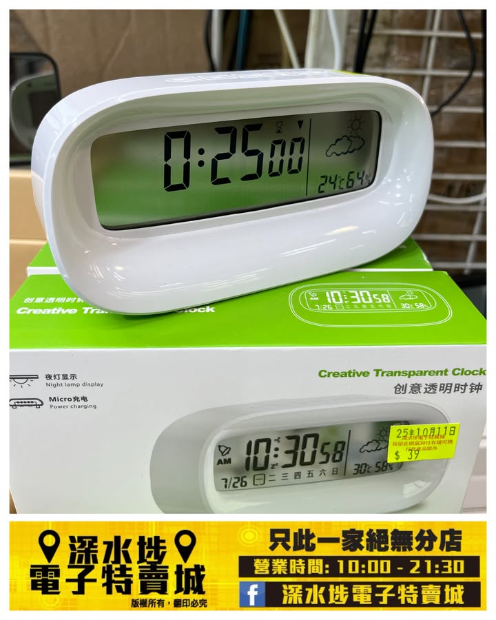 創意透明電子鬧鐘~$39