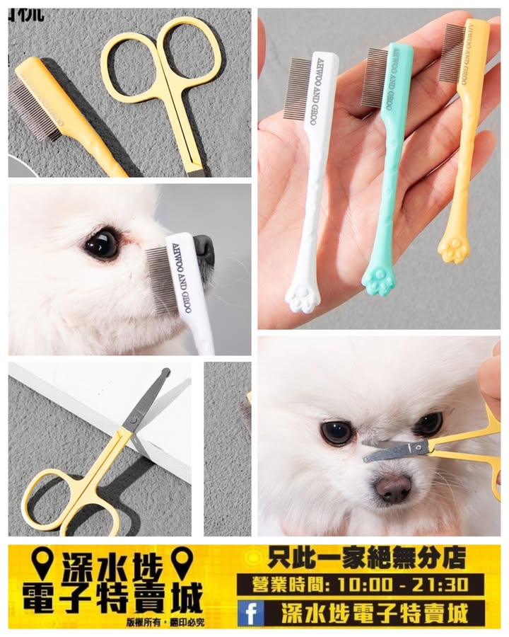 包括淚痕清潔梳和寵物美容剪刀