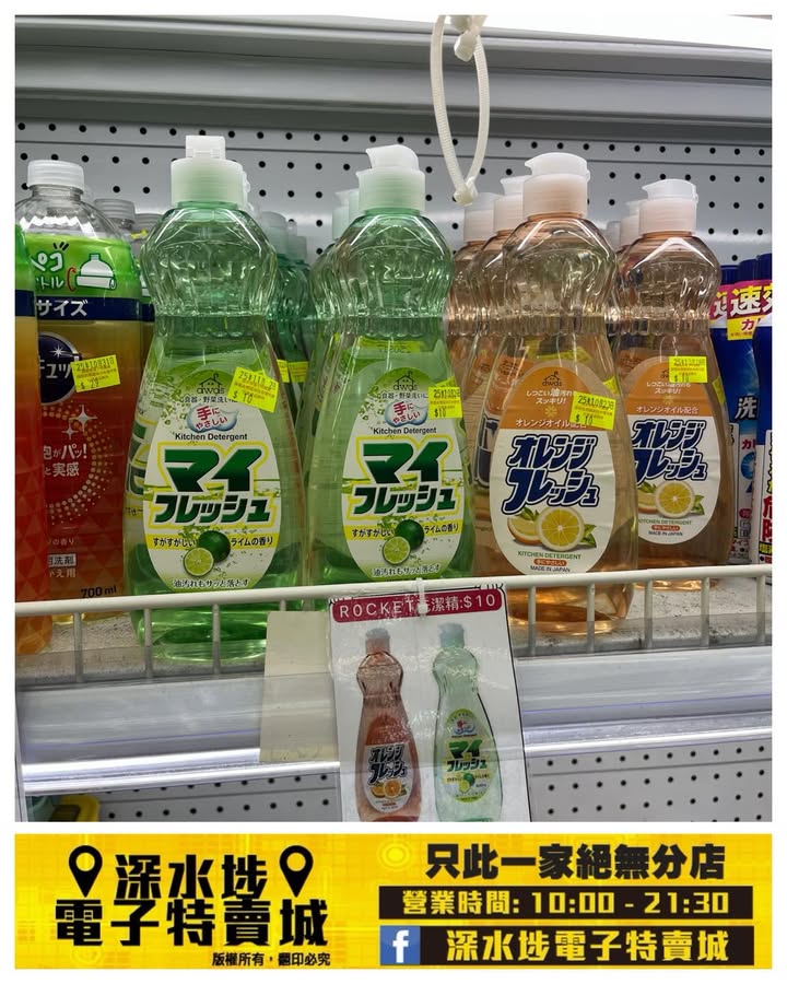 清潔用品:包括不同品牌洗潔精、廚房清潔劑、
