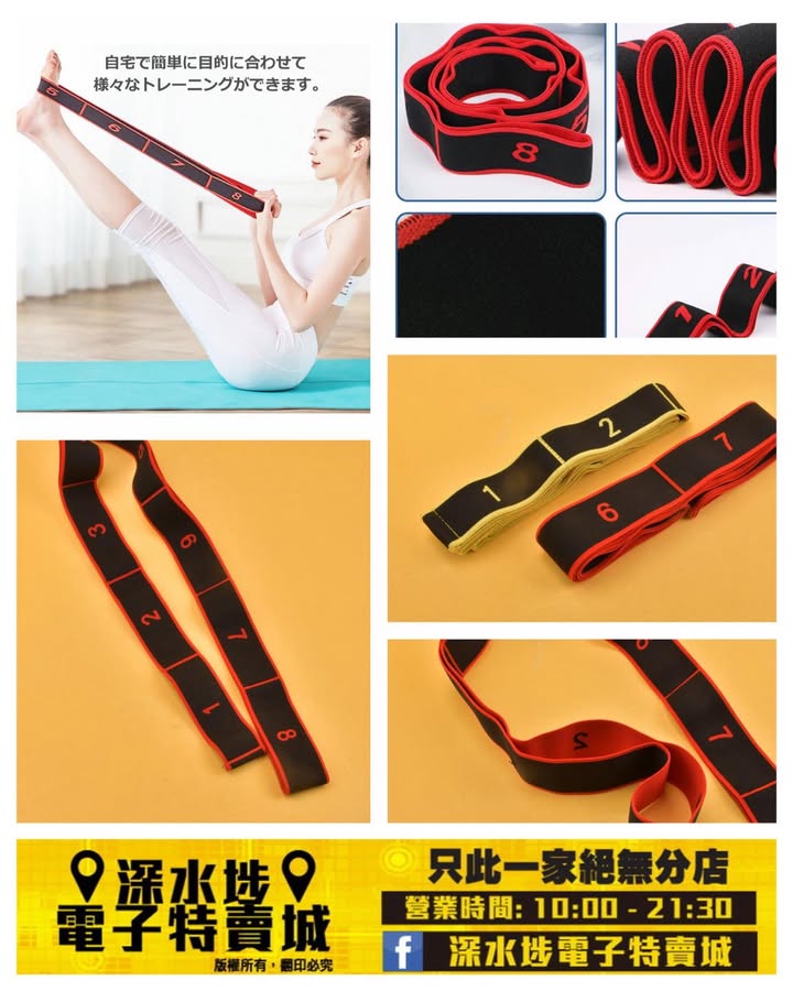 數字標記瑜伽伸展帶阻力帶~$15/條