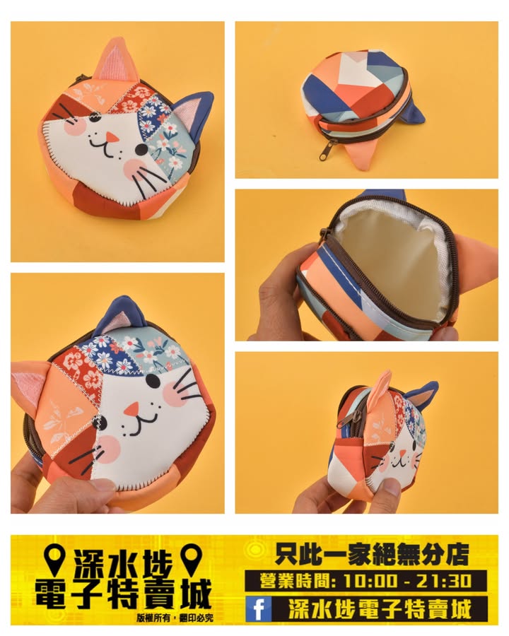 日系可愛卡通貓拼色布藝零錢包 ~$15
