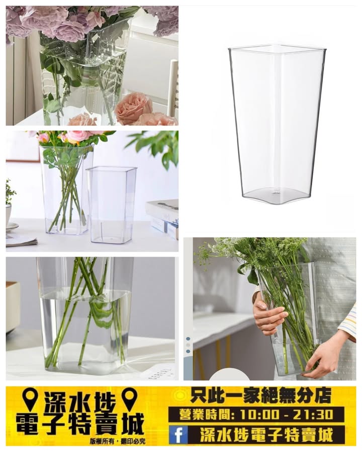 正方塑膠透明花瓶~$19