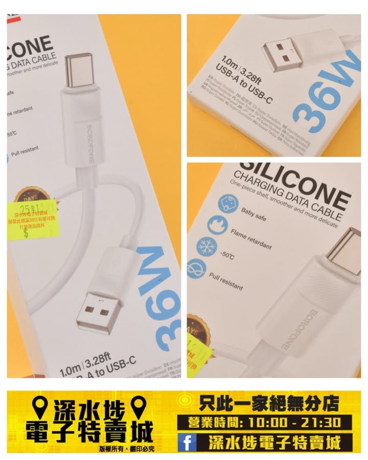 矽膠料USB 數據充電線 ~$5