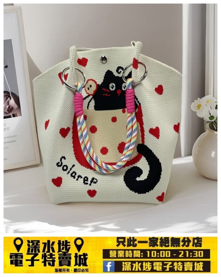 貓咪圖案編織手提水桶包~$19