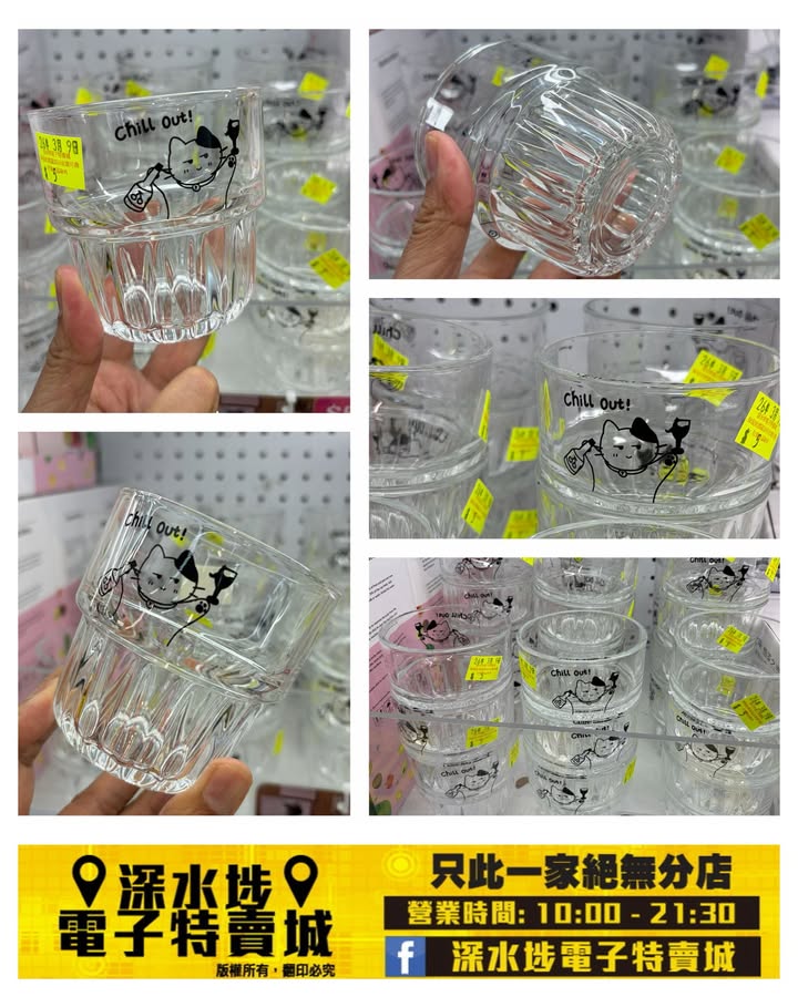 貓貓圖案玻璃杯~$5/隻
