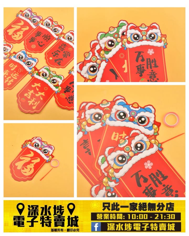 醒獅頭賀年掛飾紙牌~$9
