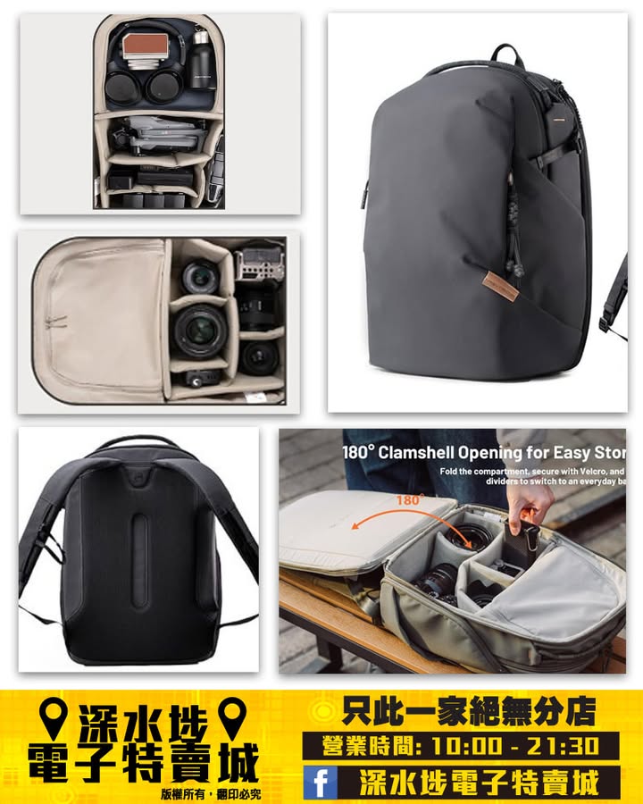 可容納單眼相機、鏡頭、16吋手提電腦