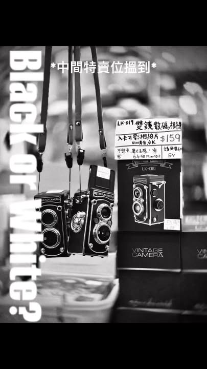 💁🏻♀️雙鏡復古數碼相機👀 ~$159*中間特賣位搵到*迷你化彷經典Rolleiflex造型,機頂腰平式觀景器、雙鏡結構加上過片搖杆,都一一還原。數碼化後令經典重生,影相/拍片一樣得,另設有夜視鏡功能。仲識得自動對焦。影片介紹:https://fb.watch/EkwtpHnxii/?⚙️Spec:-型號:LK-019-照片解像度:6400萬像素-影片解像度:4K超高清-主鏡頭(上):全彩色感光元件-副鏡頭(下):黑白紅外線夜視鏡-曝光補償:-2EV至+2EV-自動對焦、白平行調教-備有2顆LED補光燈-備有腰平觀景器1:1屏幕-Type-C線充電 (*請配合5V慢充火牛使用*)-最大支援64GB Micro SD卡 (*不包卡❌另購*)*包裝內不包读卡器 *包裝內不包转接头*Packing Not include Card Reader, Adapter, Memory Card.營業時間10:00-21:30WhatsApp 產品解答問題熱線:98874308(只限 WhatsApp 對話)YouTube官方頻道https://www.youtube.com/@SSPoutletPlayer網站:https://www.sspgadgetoutlet.com