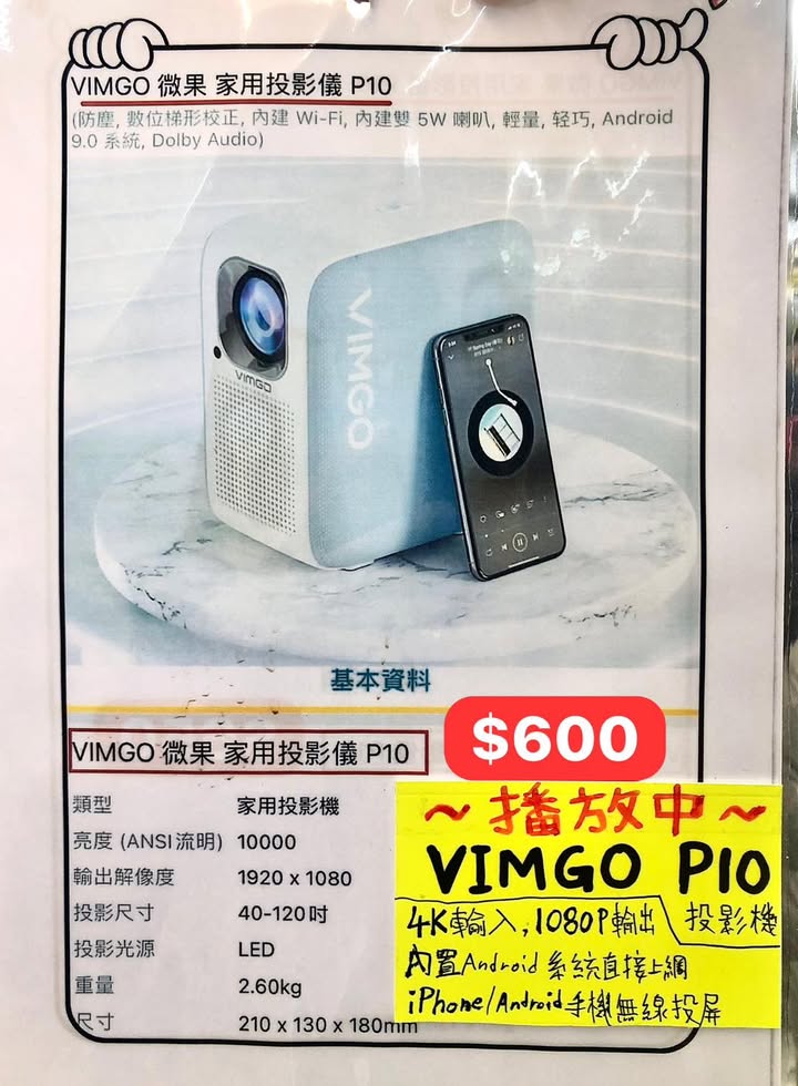 📽️影院級享受VIMGO P10全高清投影機 ~$600