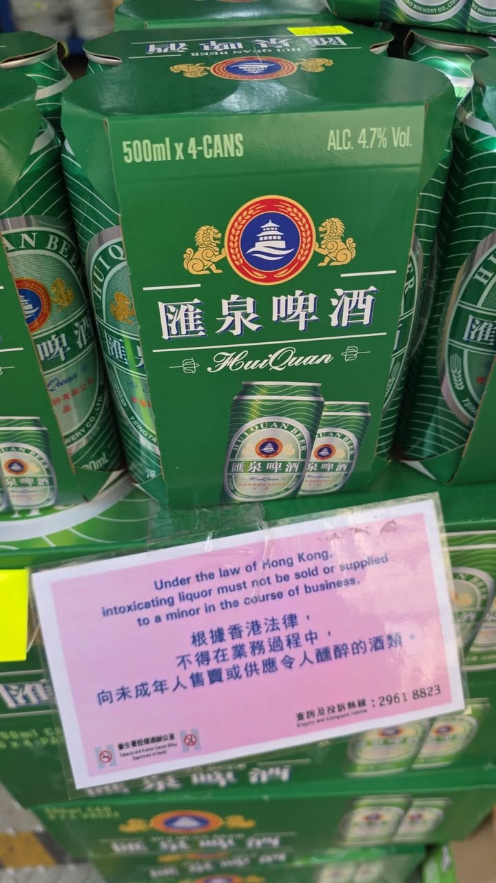 根據香港法律,不得在業務過程中,未成年人售賣 或供應令人醺醉的酒類