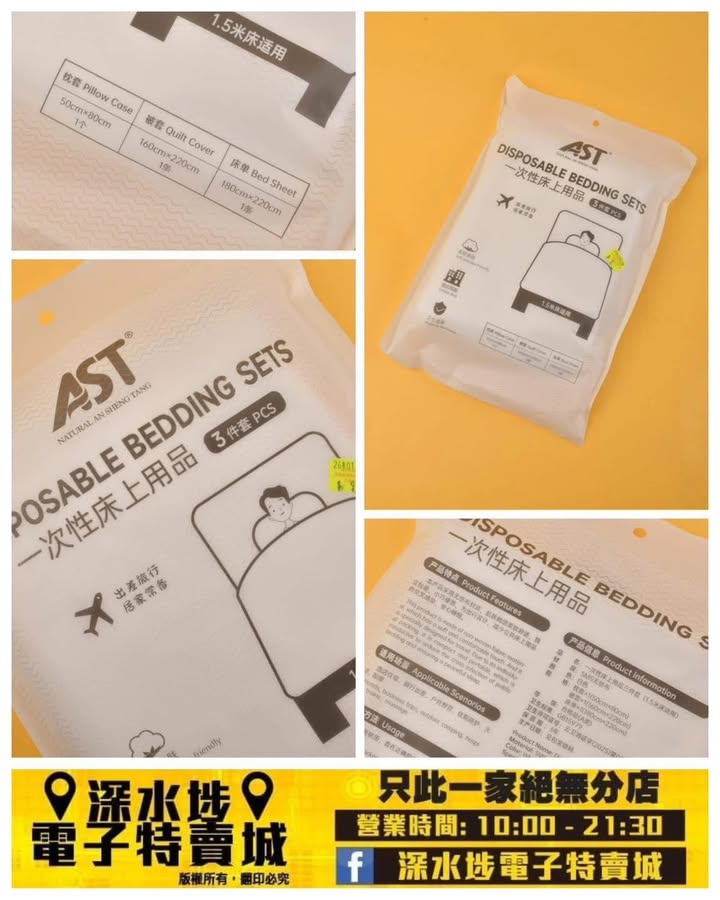 AST旅行一次性床三件套裝~$9