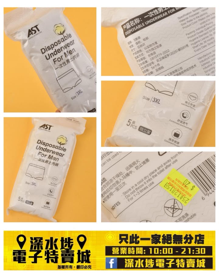 AST 即用即棄男士內褲~$20