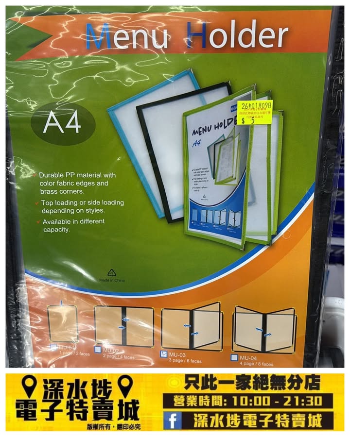 Bindermax.A4菜單夾簿~$5