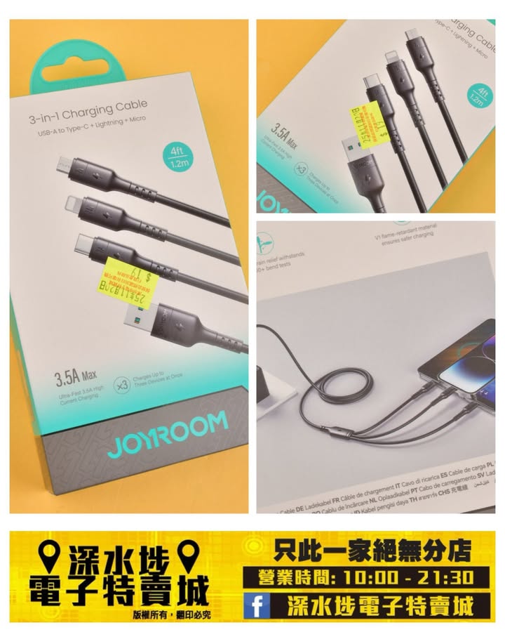Joyroom 3合1 USB 充電線 ~$19