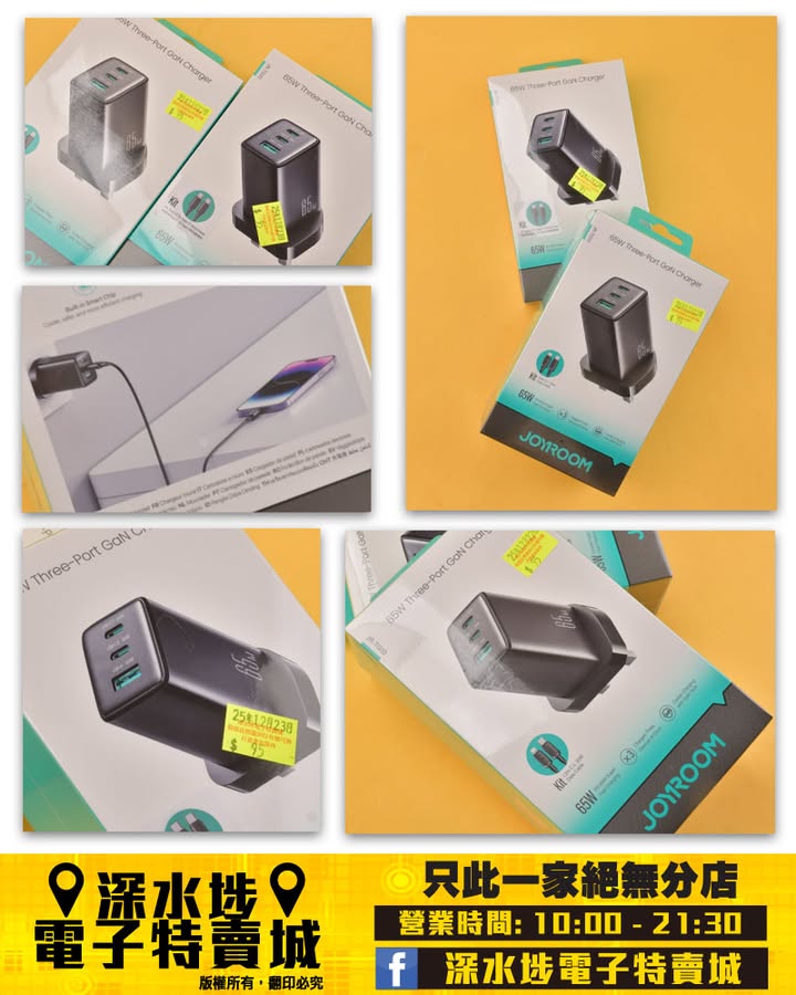 65W PD超級快充,可同時為三個裝置充電