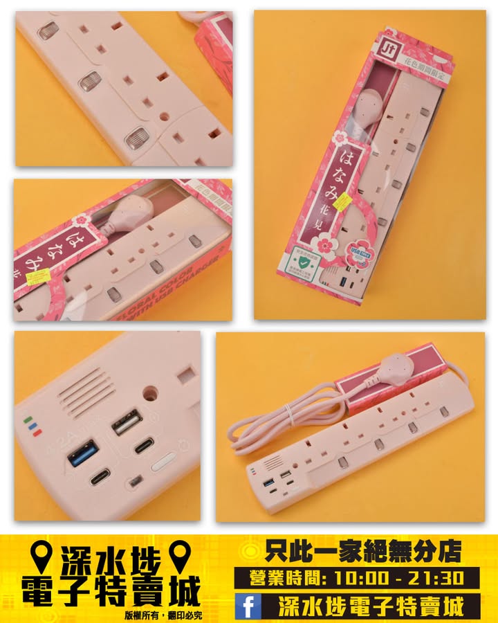 4位獨立開關插座、2個USB-A與2個Type-C充電接口