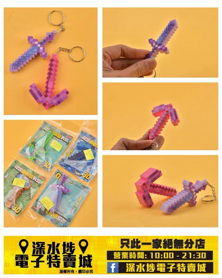 Minecraft 主題的像素風格武器匙扣~$25