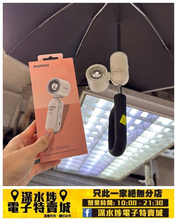 傘夾設計,可夾在陽傘、嬰兒車或桌面上使用