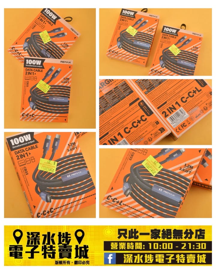REMAX.CB33二合一數據充電線~$29/款