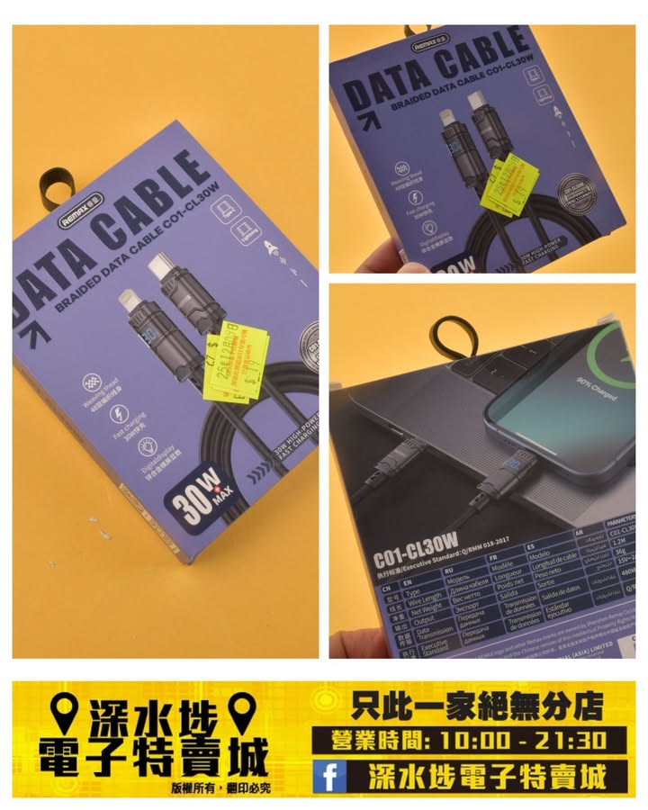 Remax USB 數據充電線 ~$19