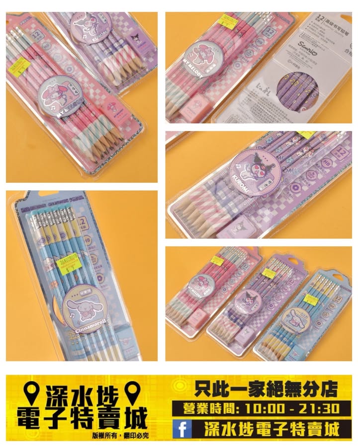 Sanrio卡通圖案鉛筆套裝~$9/套