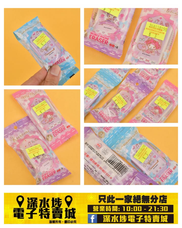 Sanrio手機造型擦膠套裝~$3/款