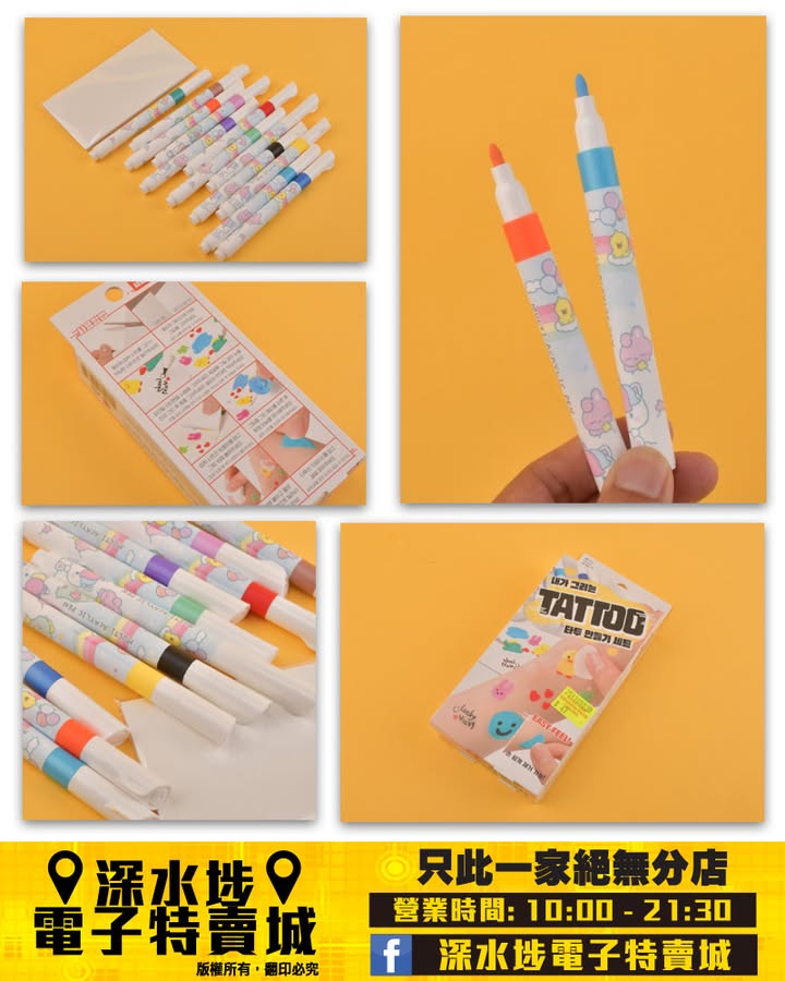 盒內11支專用畫筆及多張紋身水印畫紙