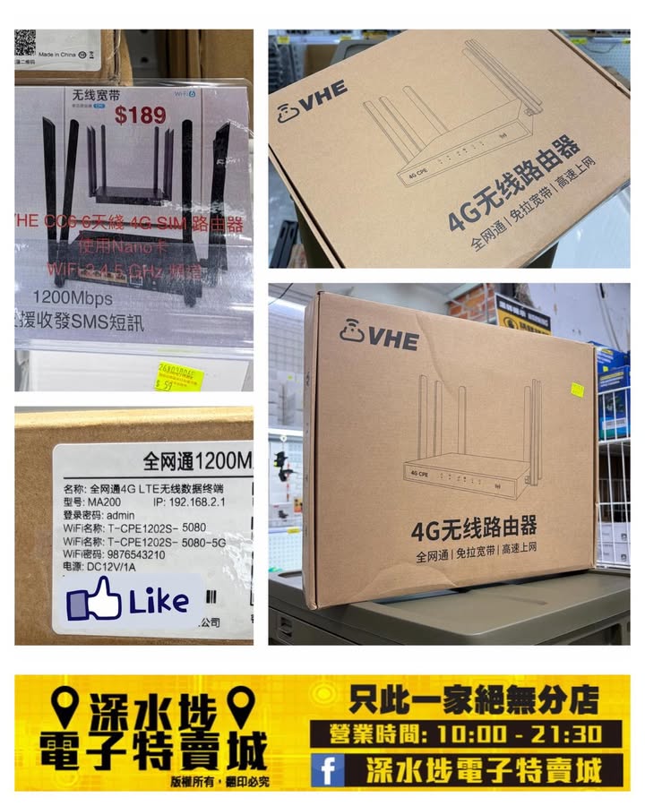 VHE 4G 無線路由器~$189